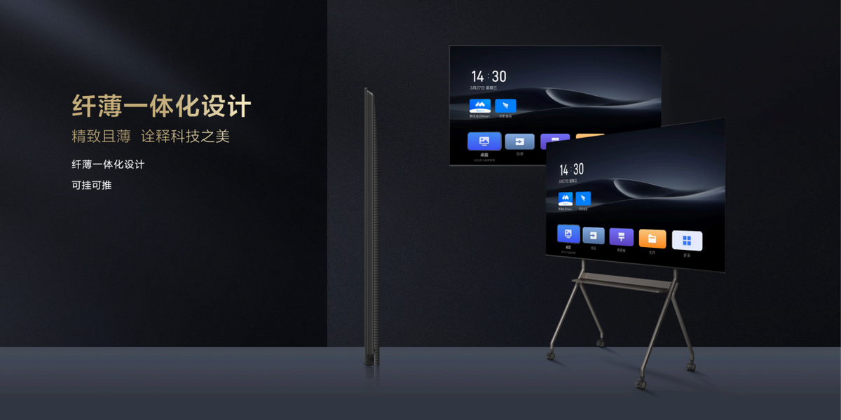 纤薄外观设计贴合会议场景需求在外观设计上,TCL办公智屏采用纤薄一体化设计,整体贴合会议场景的需求,同时轻便稳固的支架设计,让屏幕占地空间更小的同时,选择移动推车的话更便于挪动。由于设备结构简化,清洁和维护工作也变得更简单,不仅能有效提高工作效率,还能节省维护成本。