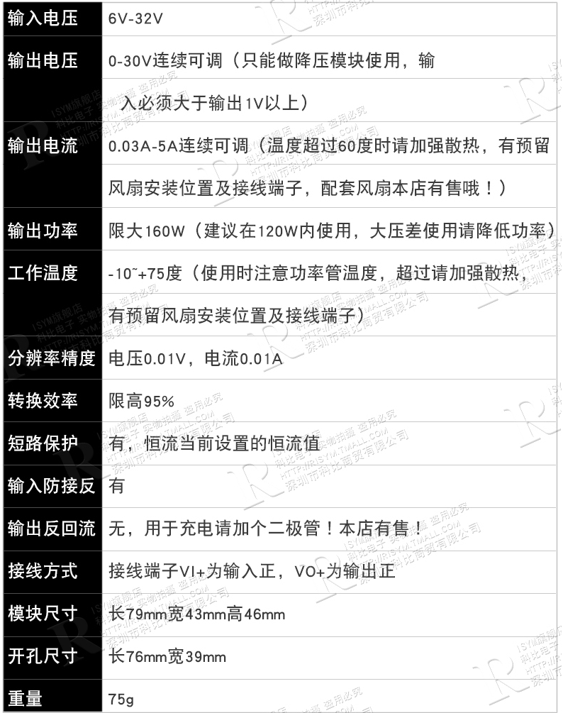 这个可调电源你的核心就是可调的模块了。经过多方对比,体积,输出电压,输出电流,显示,调节方式,选用了下图的模块,有点小贵,但是功能还是比较强劲。带有风扇模块的接口,(避免广告嫌疑就不贴链接了,大家可以自己搜索)。这个模块输出0-30V,由于我们输入26.4V,那么计划输出的电压就是24.4V左右,(半导体压降)。输出电流在5A,虽然虽然在1.5A,但是用低电流的时候,开关电源的功率达到36W,降压后是可以达到较高电流的。这个届时做出来具体测试,但是一般设备完全够用了。(大家可以根据自己的需要换更大的开关电源满足输出,但是需要考虑好体积及散热的问题)同时在较高功率时要加风扇,以保证输出模块的稳定性,我这个电源暂计划加两个风扇,给开关电源和可调模块同时输出散热。