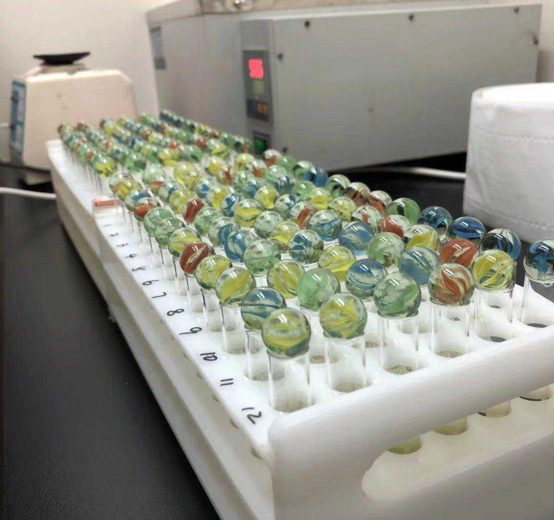 我买了弹珠当试管塞.好在这种东西便宜,自己掏腰包就买了一堆,每次做实验最期待的就是放弹珠这一步啦!