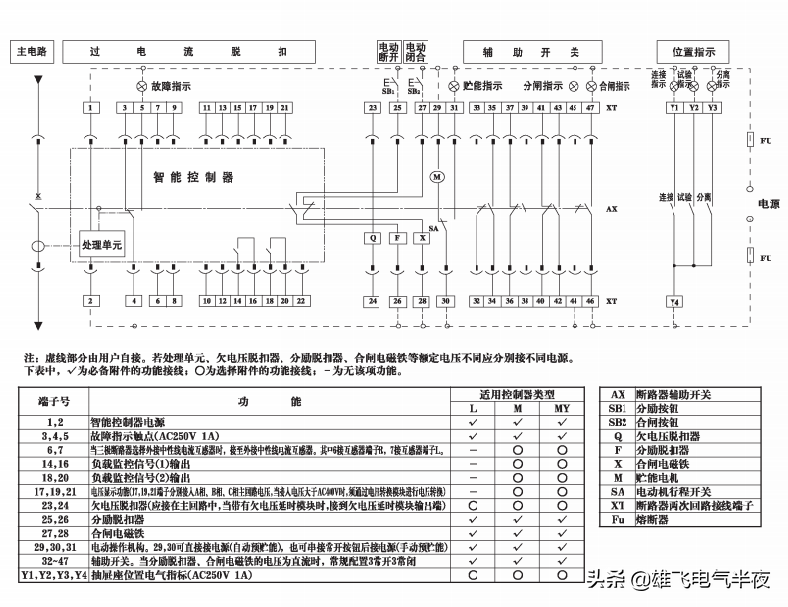 2.1配L或M、MY型智能控制器的断路器二次回踣接线图: