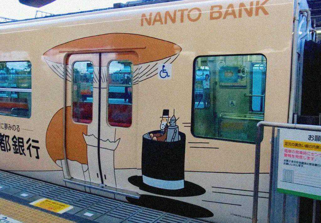 田村茂的画装饰在东京地铁的车厢上:
