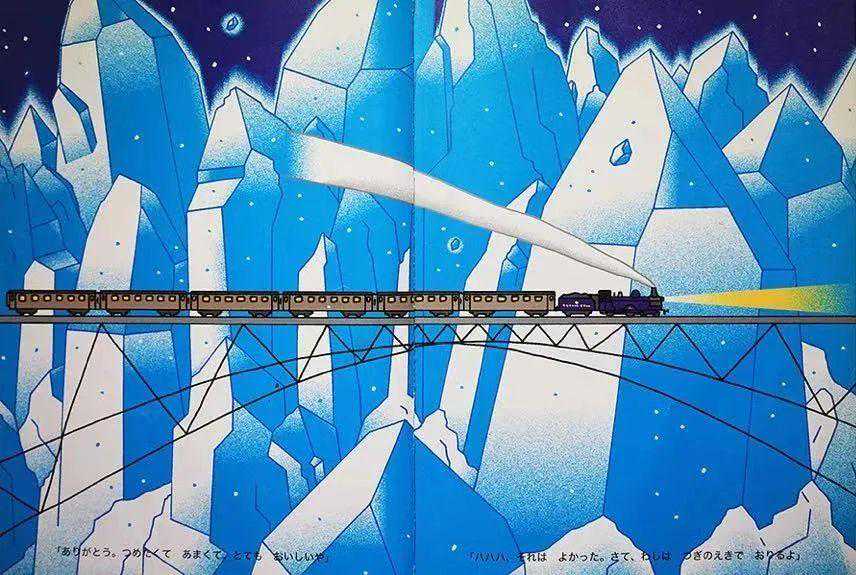 田村茂的画,和我们平时看到的四色印刷的绘本中的配色完全不同,他的画在蓝色的背景里蕴涵着丰润的空间,在书中描绘着简单而富有哲理的世界。