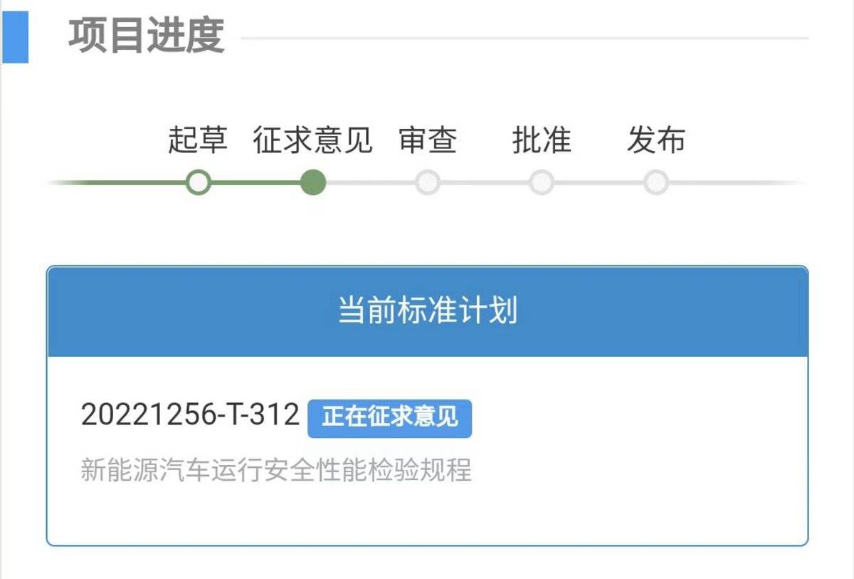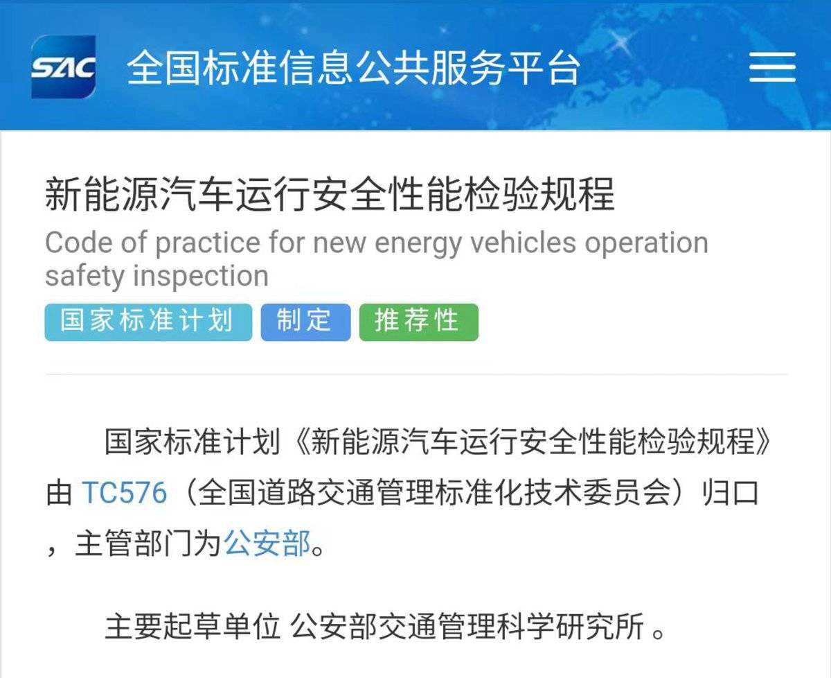 那么这件事是真的吗?我们也查询了相关文件,结果还真找到了一个相关的信息。在全国标准信息公共服务平台上,我们看到了一个叫做《新能源汽车运行安全性能检验规程》的未执行标准。