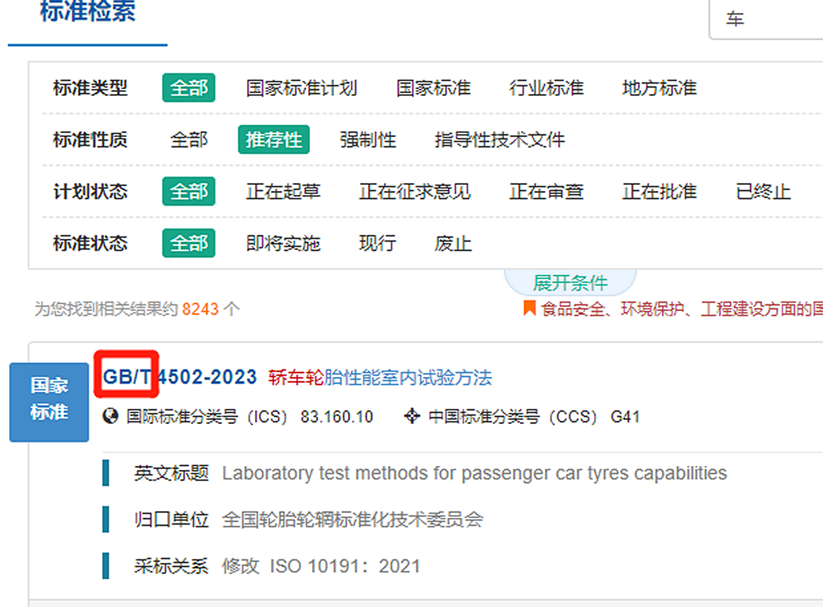 另一个,在意见相关信息中,我们能够注意到其标注了“GB/T”和“推荐性”字样,我们在全国标准信息公共服务平台进行了一番检索,我们发现国家强制性标准前面往往有GB字样,而推荐性标准前面往往有GB/T字样。