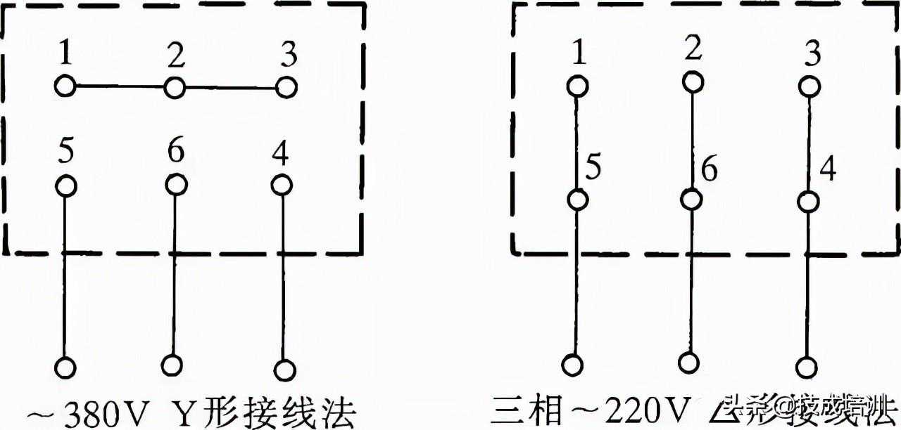 图1三相交流电动机Y形和△形接线方法