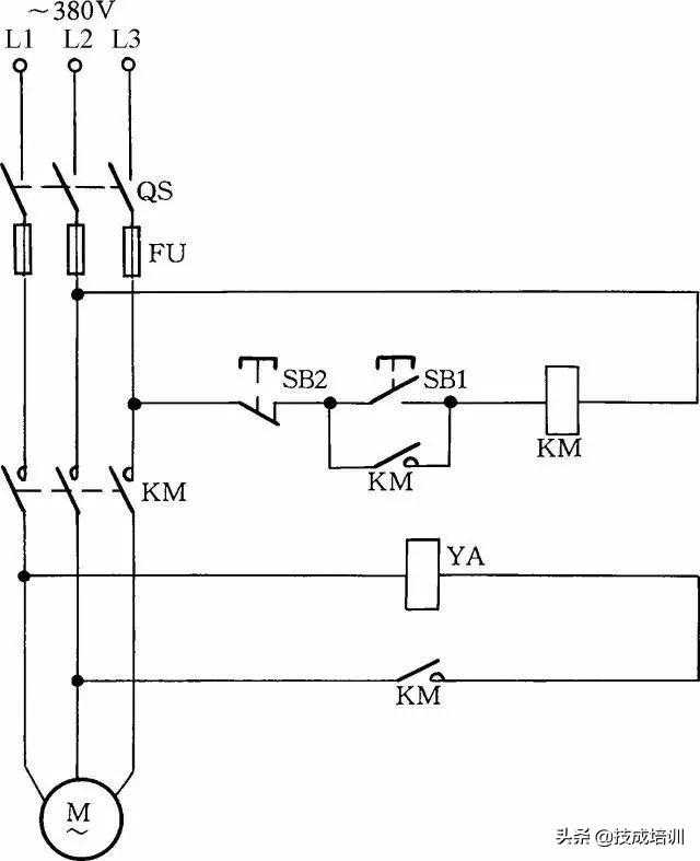 线路中YA为制动电磁铁,在通电后,制动解除;在断电后,YA立即制动。