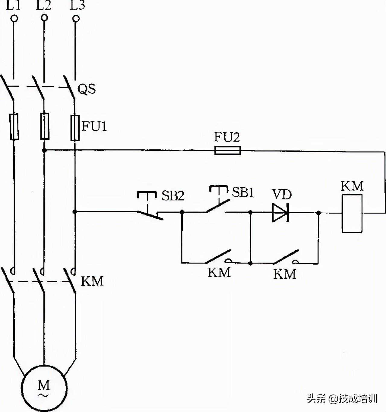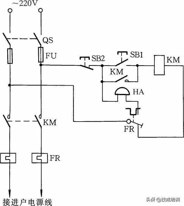 因为启动电流较大,所以这种线路只适用于操作不频繁的场合。线路中,VD应选用耐压大于700V的二极管,电流要根据交流接触器线圈电流而定。