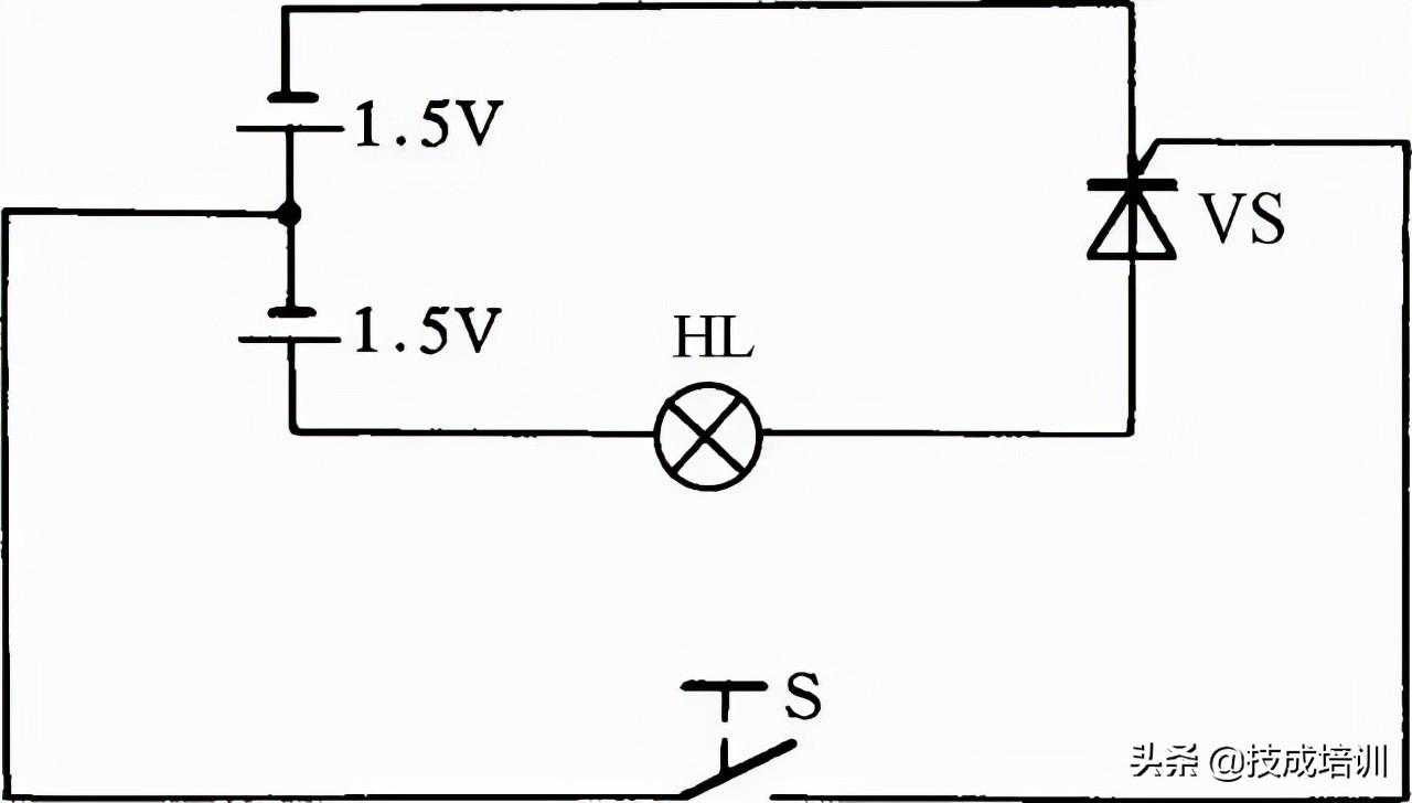 30.检查晶闸管一简法利用图30所示的简便方法可检查晶闸管的好坏。当开关S断开时灯泡不亮,而当开关S闭合后灯泡发亮,说明晶闸管能导通工作,否则晶闸管就是坏的。此方法对一般晶闸管均能测试,灯泡选用1.5V小电珠灯泡。