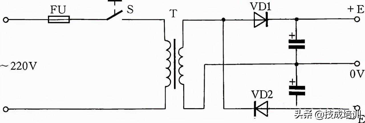 图中的黑圆点表示绕组的同名端。如果将初、次级的连接线改为同名端相连;则输出电压将降低6.3V。采用这种接法;负载电流不得大于初、次级的额定电流。网路电压如经常比220V低(或高)30~40V;可选220V/36V的变压器连接。