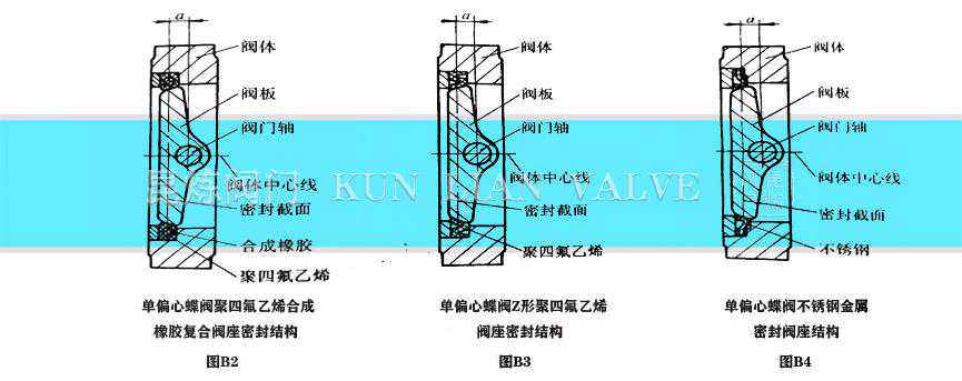 图B1所示密封结构,采用整体阀座,合成橡胶密封圈被置于阀板上。
