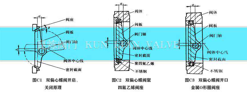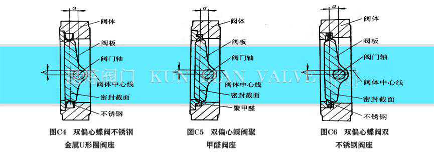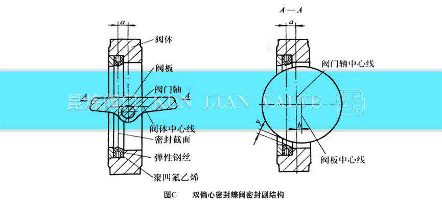 双偏心密封蝶阀的密封原理图C所示为一种典型的双偏心密封蝶阀密封副结构。该类蝶阀通常被称为高性能蝶阀。