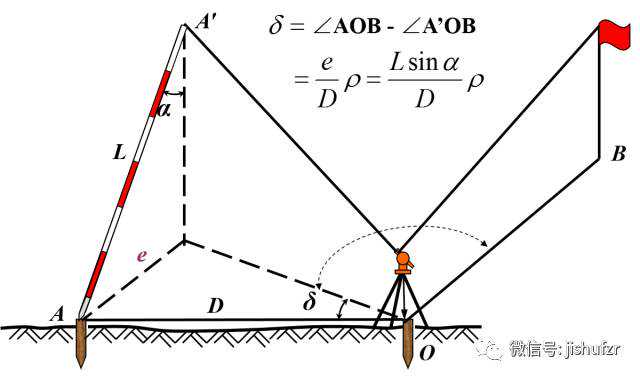 目标偏心误差对水平角观测的影响与偏心距e成正比,与距离D成反比。观测时尽量瞄目标底部。