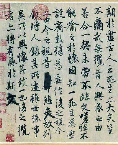 揽字《说文解字》没有收录,后来多认为《说文解字》中收录的擥字,俗写作揽(王筠《说文句读》),其本义是撮持、敛置,又引申为总揽、聚揽之义。把擥(揽)的字义代入《兰亭序》,似乎也可以说通。“后之揽者亦将有感于斯文”——可以是指把写有《兰亭序》的这张纸持在手中的时候,也将引发对文章的感怀。“每揽昔人兴感之由”,结合下一句“若合一契,未尝不临文嗟悼”——可以是说总揽所有前人兴起感怀的由头,如果“合一契”,没有不“临文嗟悼”的。裴松之注《三国志》,引用东晋孙盛著《魏氏春秋》,说诸葛亮“夙兴夜寐,罚二十以上,皆亲擥焉”,这里的擥也是同样的意思。