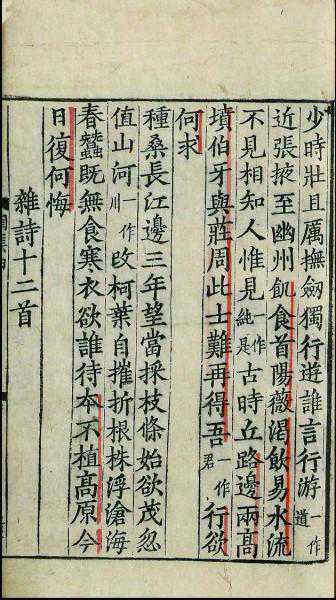 南宋刻递修本《陶渊明集》中,有“枝条始欲茂”句的一页