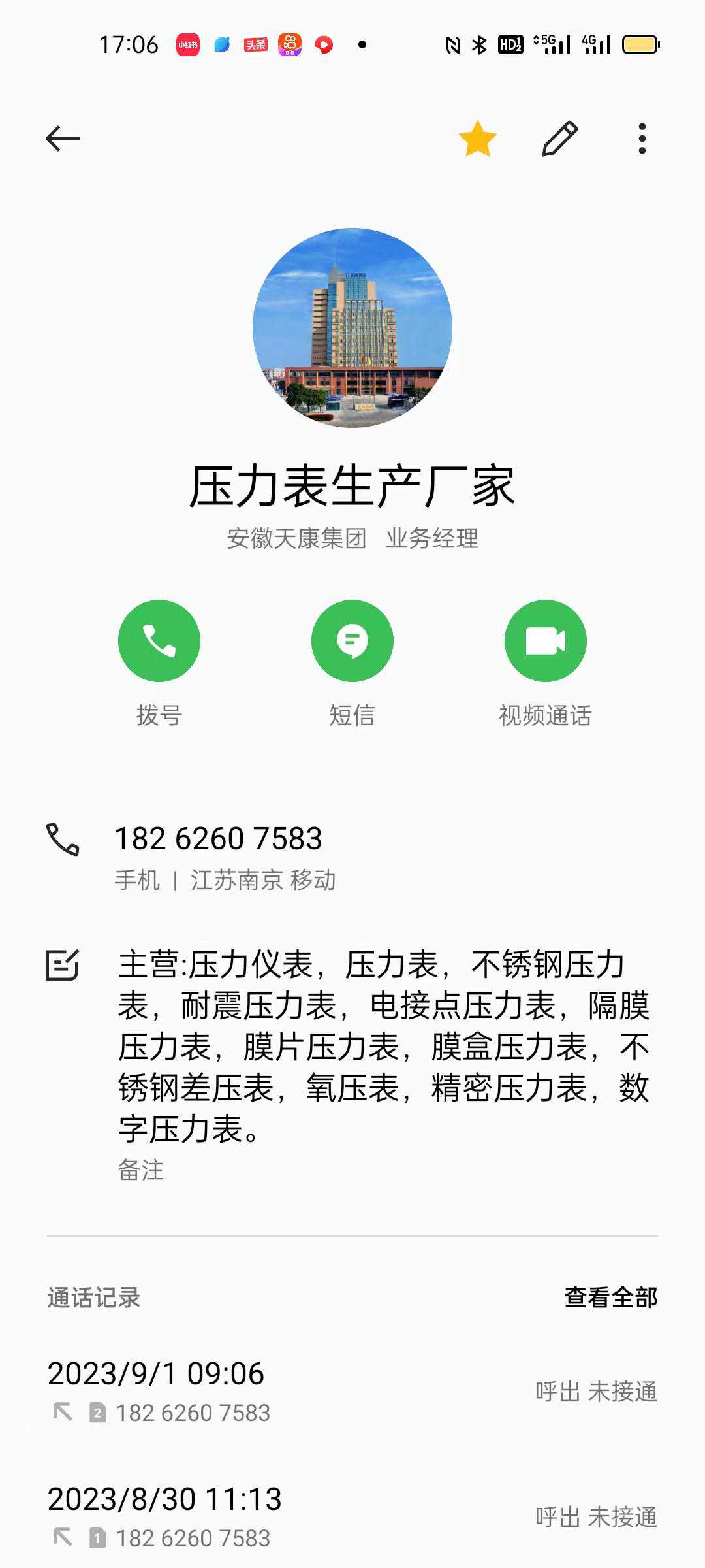 三、不锈钢压力表的工作原理不锈钢压力表的工作原理是将被测介质的压力作用在敏感元件上,使敏感元件产生形变,从而改变其电阻、电容或弹性特性。通过传动机构将这种形变转化为电信号,再通过指示装置将电信号转换为人们可以直接观察的指针或数字。这样,人们就可以通过观察指针或数字来判断被测介质的压力大小。