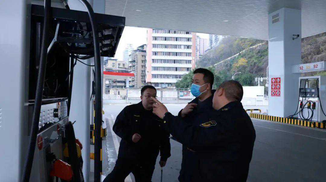 重庆市市场监管综合行政执法总队在重庆某加油站检查加油机主板是否被改动。(重庆市市场监督管理局供图)
