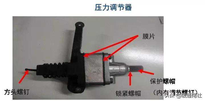 压力调节器作用:根据管网压力的高低和用气量的变化自行调节压缩机的进气量,使管网压力始终处于稳定的状态。
