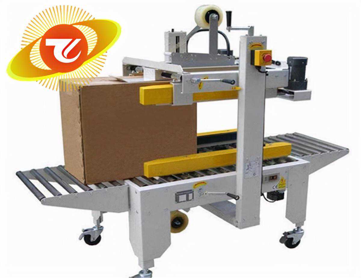 TYFX-50C自动折盖封箱机/纸箱胶带自动封口机主要适用于纸箱包装,经济快速、容易调整,可一次完成上下封箱动作,也可以与流水线配套使用,广泛应用在家用电器、纺织、食品、百货、医药、化工等行业。该封箱机设备作用特点有:
