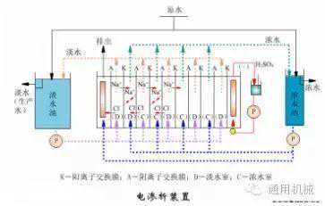 ►电渗析法是利用电场的作用,强行将离子向电极处吸引,致使电极中间部位的离子浓度大为下降,从而制得淡水的一种方法。一般情况下水中离子都可以自由通过交换膜,除非人工合成的大分子离子。
