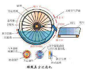 ►真空过滤机主要有外滤面转鼓,内滤面转鼓,圆盘等真空过滤机。真空过滤机过滤时,转鼓一部分浸在滤浆中,由原动机通过减速装置带动旋转。