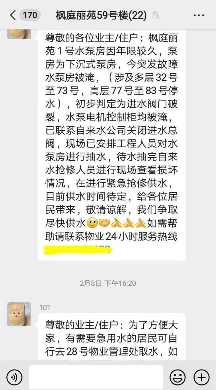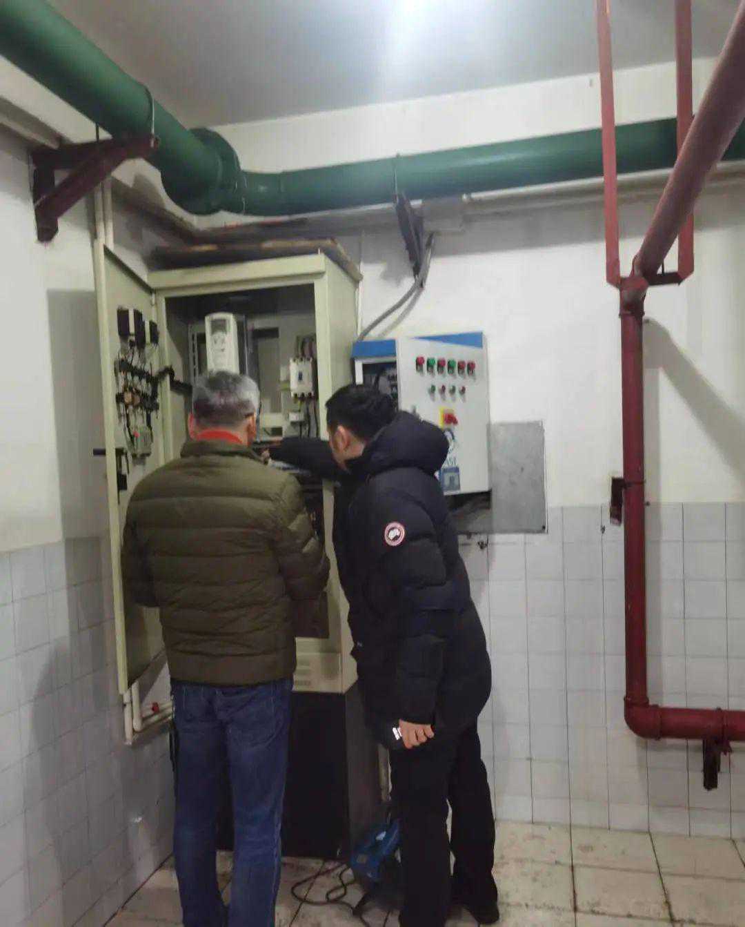 抢修恢复了主要供水设备,但自动控制系统仍处于瘫痪状态,需手动上水。“三驾马车”紧急建立了“1号泵房值班汇报群”,安排值班人员24小时轮班站岗,查看包括社区其余3个水泵房在内的总计4个水泵房情况是否正常,并及时在群里汇报。