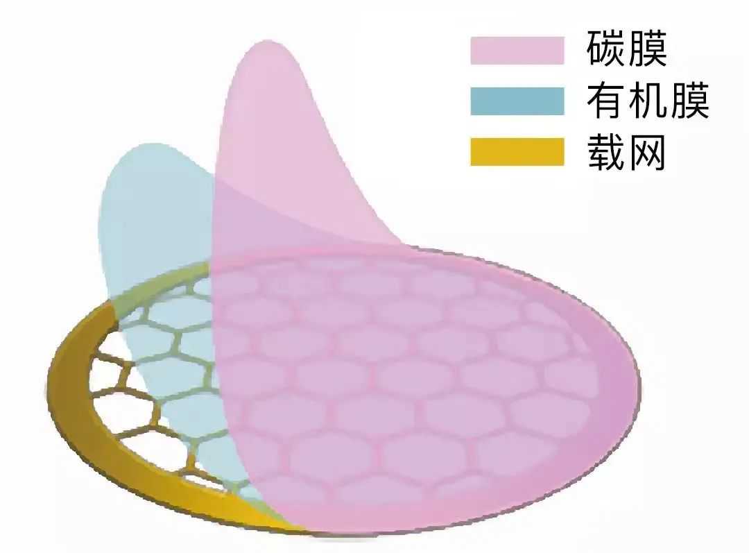 碳支持膜:由金属网、有机层、碳层构成。载网在电子束的轰击下,会发生电荷积累,从而导致样品的移动和膜的破裂。碳层的引入能够增强载网的导电性和导热性,其厚度一般为7-10nm。