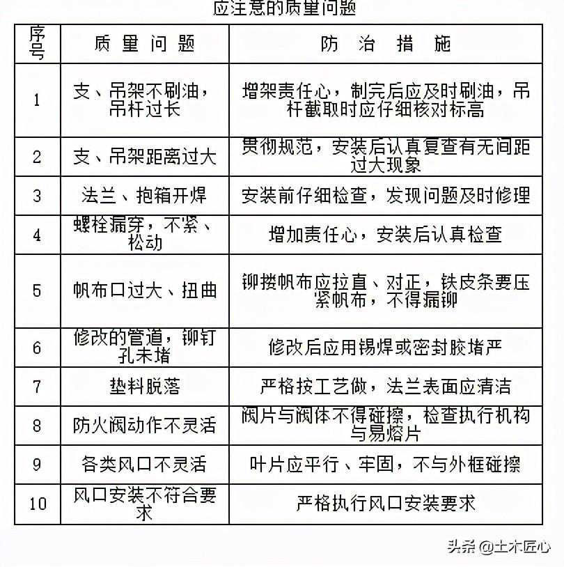 1风管及部件安装应注意的质量问题见下表。
