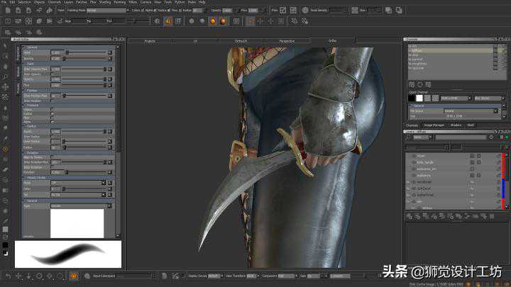 最新的还吸收了同类软件SubstancePainter的一些功能和设计,引入了新的材质系统,让你可以在绘制精细细节之前,将PBR纹理拖放到网格上作为基础层,同时还可以直接获取在线的PBR纹理贴图,此外软件还加入了Arnold着色器,以便纹理能够更接近于最终的渲染效果。