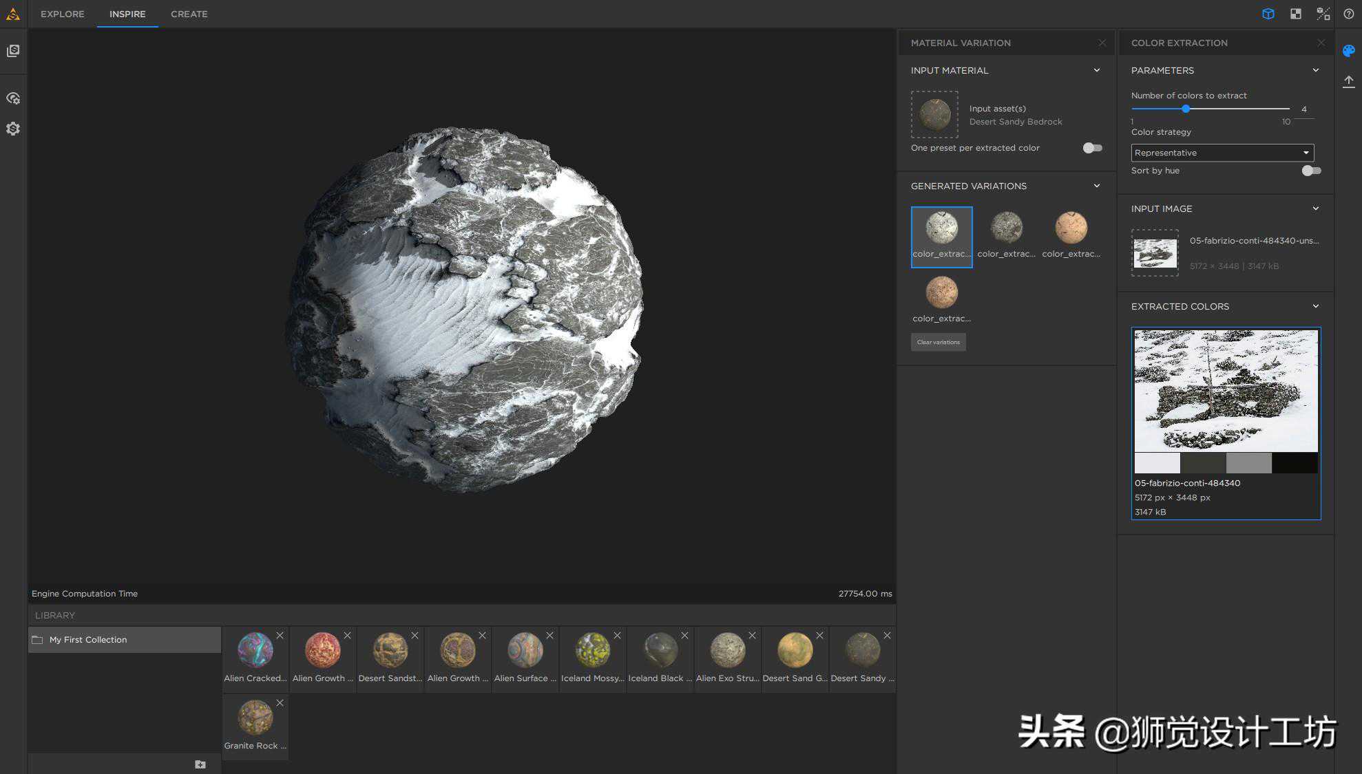 Alchemist就是Substance系列软件中新晋的一款3D材质工具,它能够提供一种全新的材质制作方法:部分借助程序算法,部分手工制作效果和肌理。在Alchemist当中,你可以基于一张基本的照片,消除照明效果,增加旧化、磨损效果,增加肌理,添加岩石、植被、水等效果,无缝平铺贴图等等。