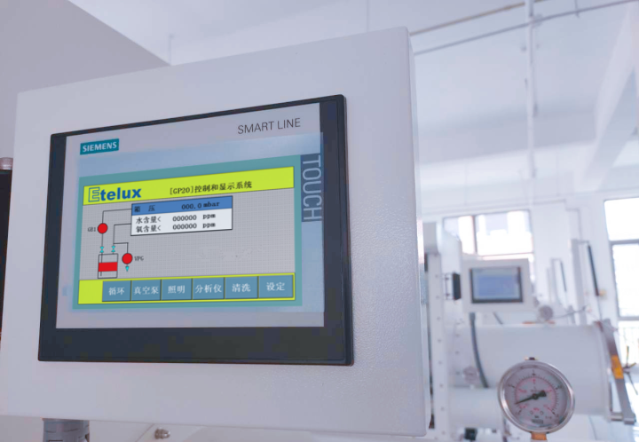 经过不断的循环净化柱逐渐将箱体内微量的水氧吸收既保证了系统的稳定性,又经济有效的净化了气体。但是在循环之前,一定要注意以下事项:—工作气已经连接,满足循环所需要的压力0.4-0.6MPa;—所有的过渡舱已经关闭;