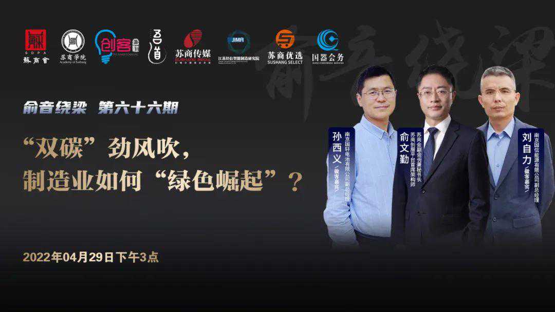 响应国家“双碳”战略,当前,汽车行业向绿色节能减碳转型升级。2022年4月29日,苏商会副会长兼秘书长俞文勤对话南京国轩电池有限公司副总经理孙西义、南京国信能源有限公司副总经理刘自力,一起把握产业变革的时代浪潮,探索企业绿色发展的新路径。