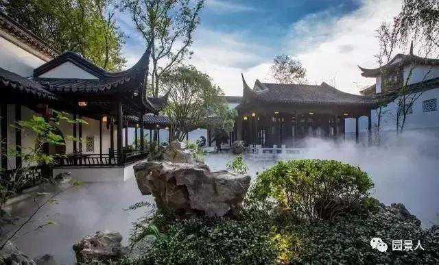 人造雾画龙点睛般点出园林之美,