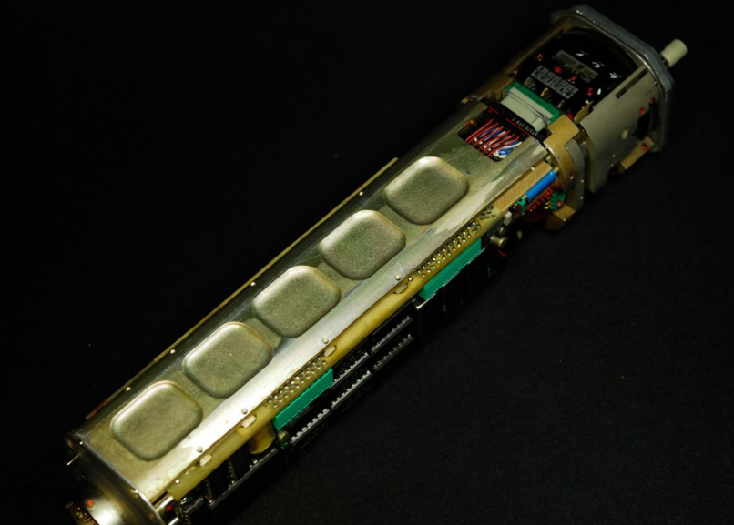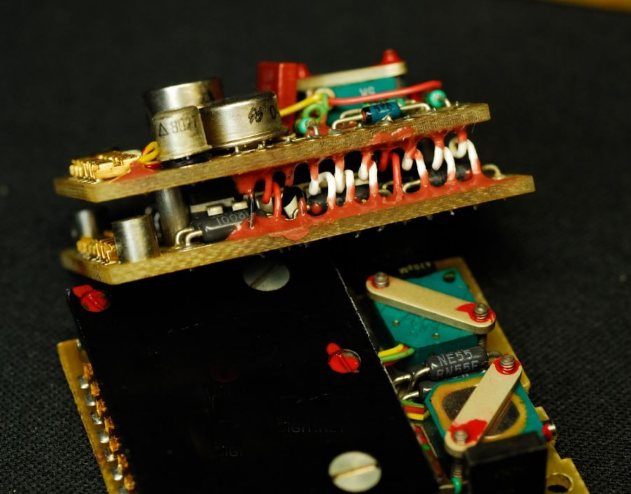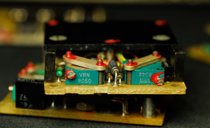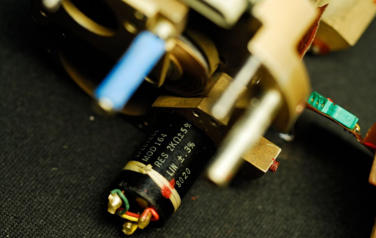 可以看到模块上基本都是陶瓷封装的小规模集成电路,生产于1980年左右。此时的航电设备正处在机械式到电子的过渡时期。由于显示技术和通讯总线技术还不成熟,此时的仪表往往采用模拟信号,由电路处理后再通过一些特殊的机电显示器件,以比较接近传统机械式仪表的指针/转轮等方式呈现。