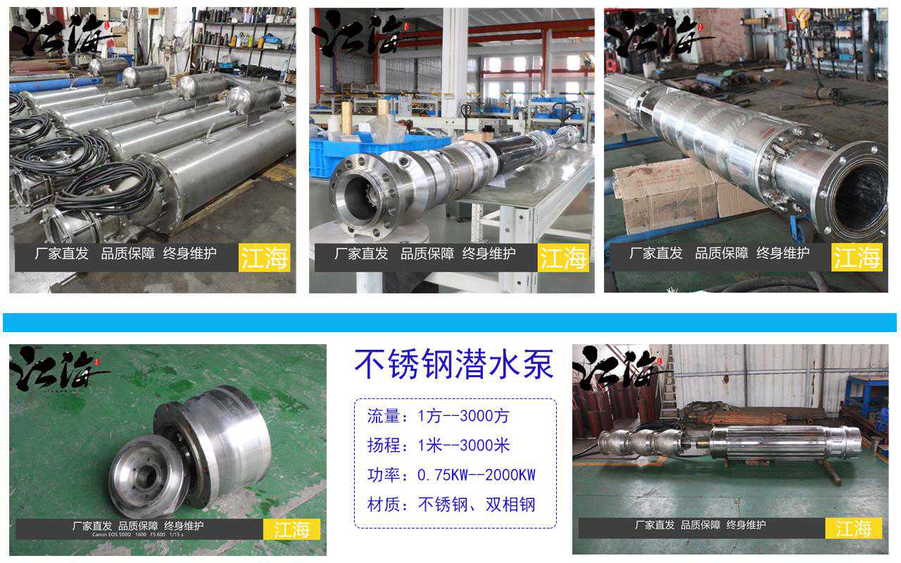 江海泵业是专业的不锈钢潜水泵生产厂家,生产多种型号不锈钢潜水泵,专业技术人员可提供售前选型指导,售后安装指导,欢迎选购。