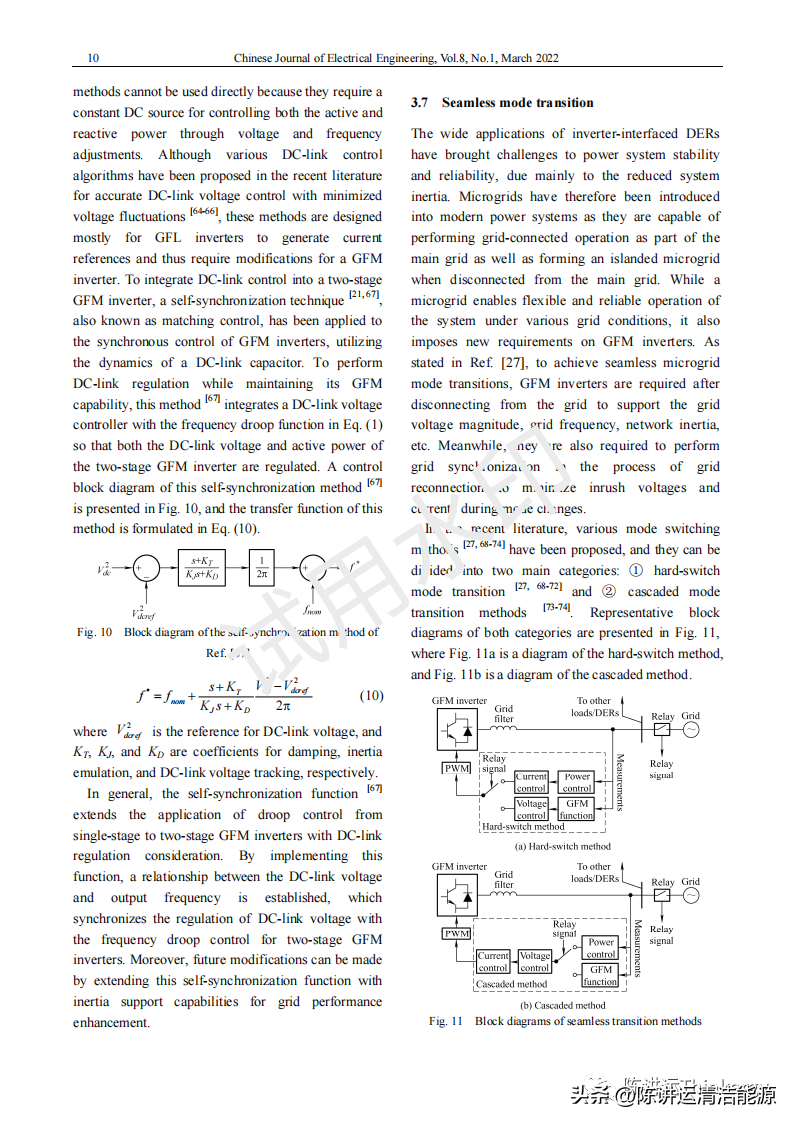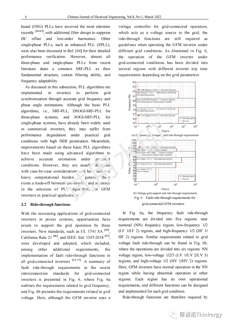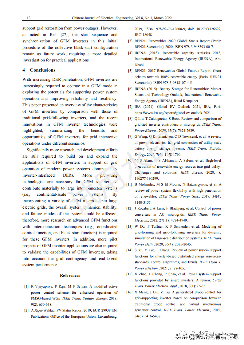 为了建立和扩大GFM逆变器的应用,以支持由逆变器接口der主导的现代电力系统的电网运行,还需要更多的研发工作。GFM逆变器需要更有前途的技术,以为大型互联系统(即大陆规模的电力系统)做出重大贡献。通过将各种GFM逆变器合并到大型电网中,可能会影响系统的整体系统动力学、稳定性和失效模式;因此,需要对这些GFM逆变器采用互联技术的先进GFM功能(如协调控制功能和黑色启动功能)进行更多的研究。此外,还需要更多的GFM逆变器应用的试点项目,以验证GFM逆变器的能力,并考虑到电网的应急情况和端到端系统的性能。编译陈讲运